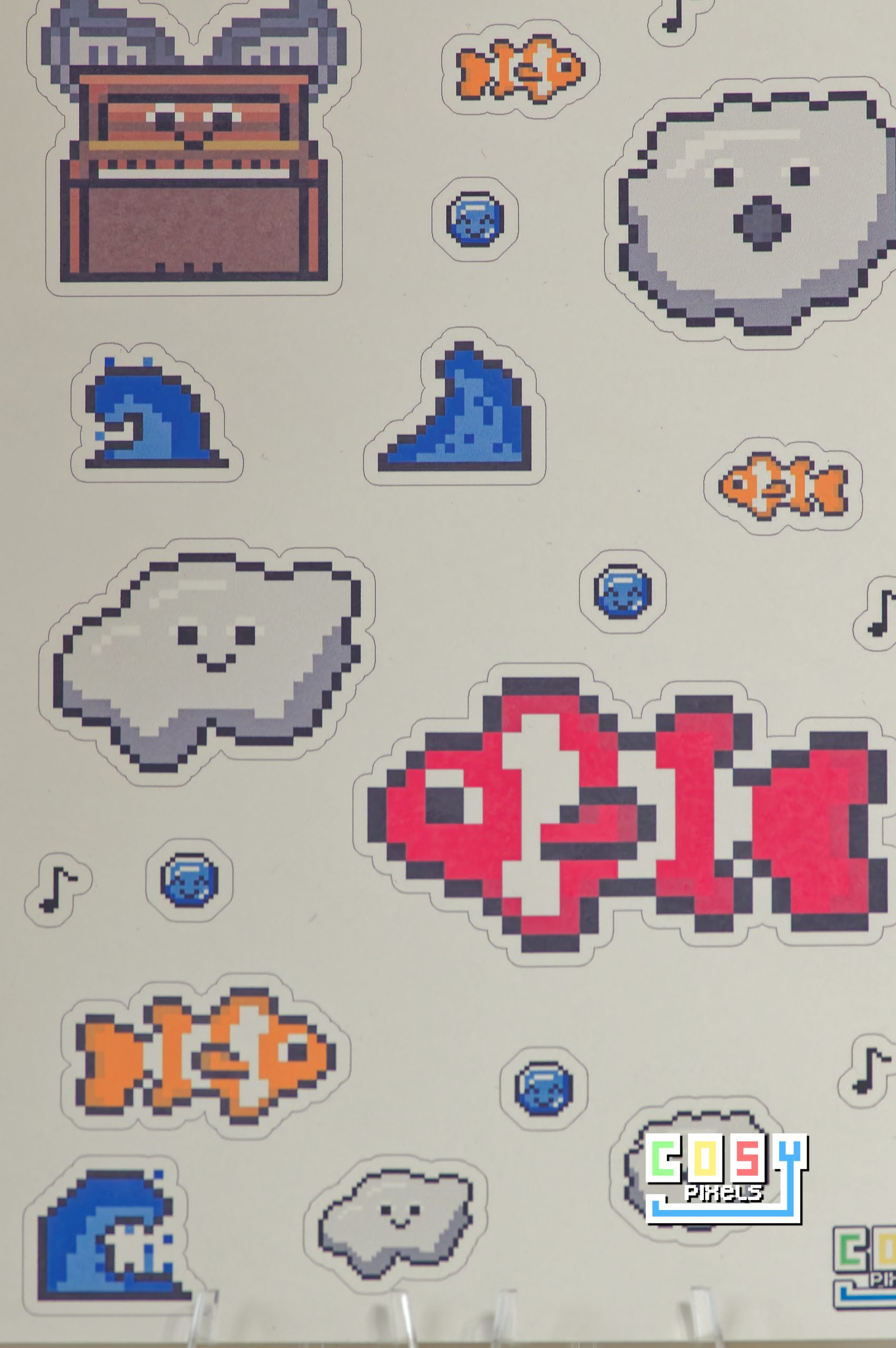 Bring a splash of retro charm to your world with these “Fishes and Pianos” pixel stickers! Each set includes a quirky collection of pre-cut stickers featuring a pixel art upright piano with fluffy wings and playful pixel fish, inspired by classic video game aesthetics and a beautiful song. Available in your choice of premium matte or glossy finish, these stickers are perfect for decorating laptops, journals, and more.