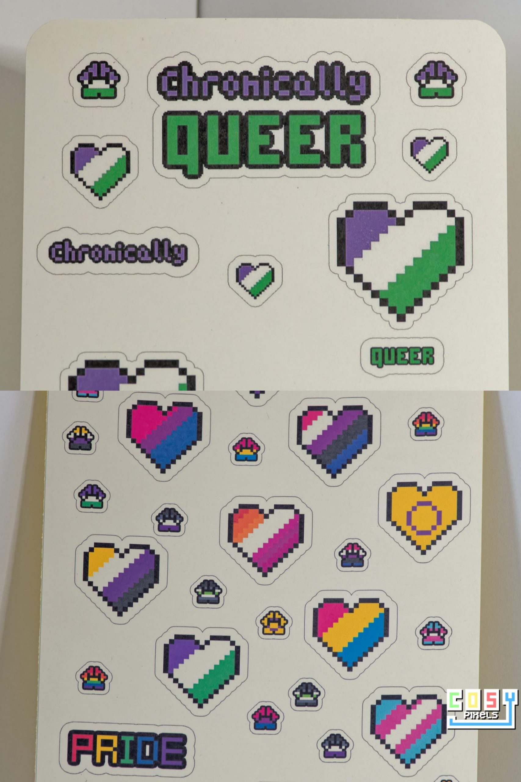 A6 Pixel Pride Sticker Sheet – “Chronically Queer”