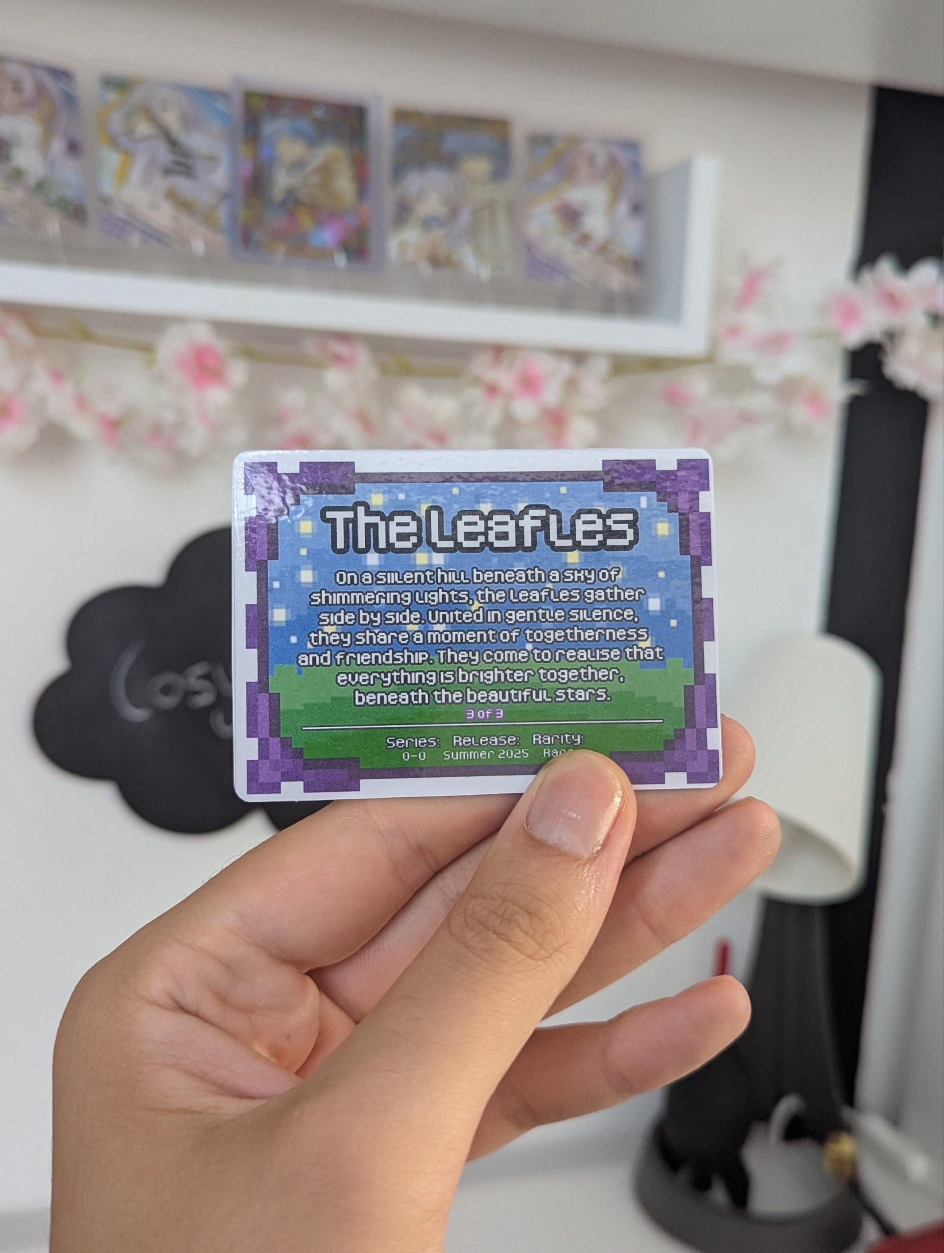 These cards are purely collectible and aesthetic—there is no game mechanic attached. Perfect for Leafle fans and collectors alike!