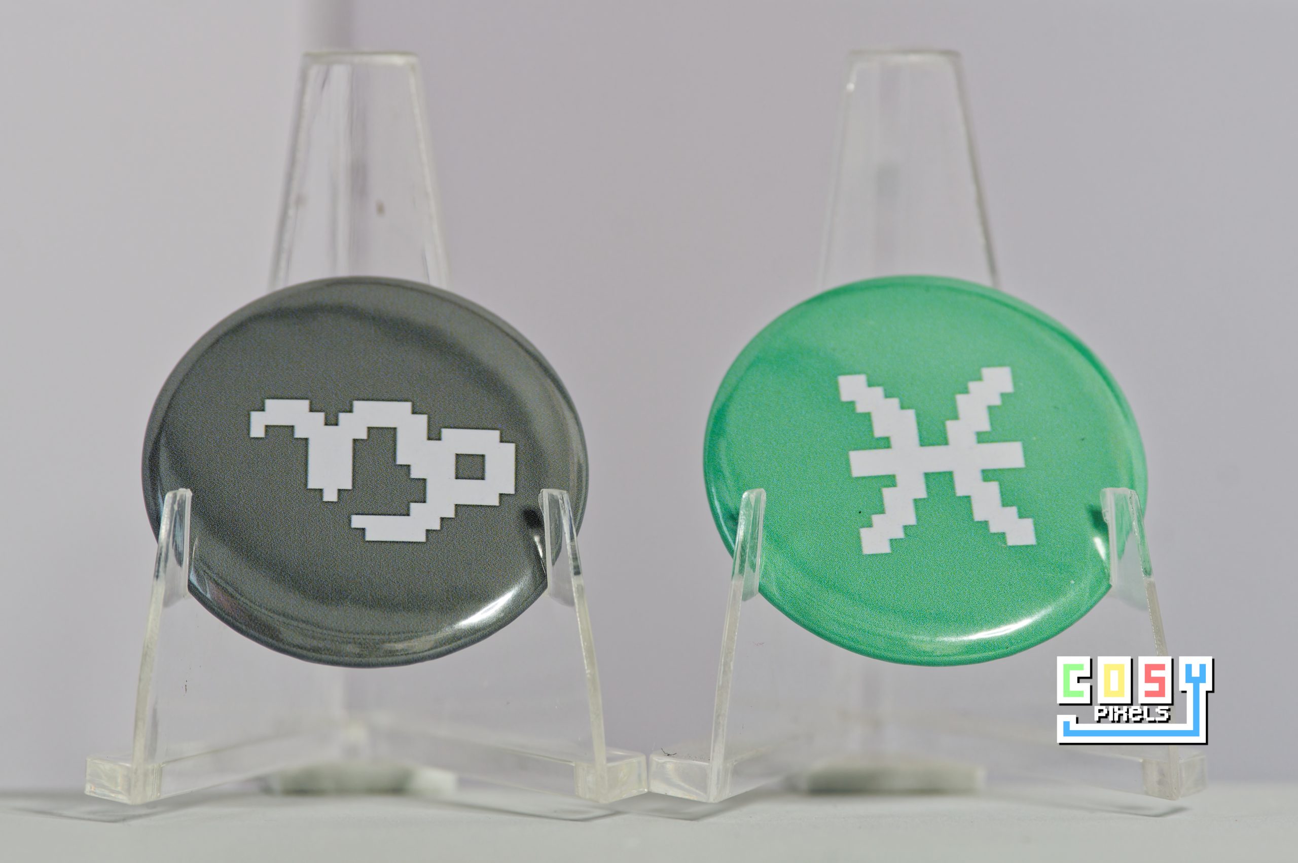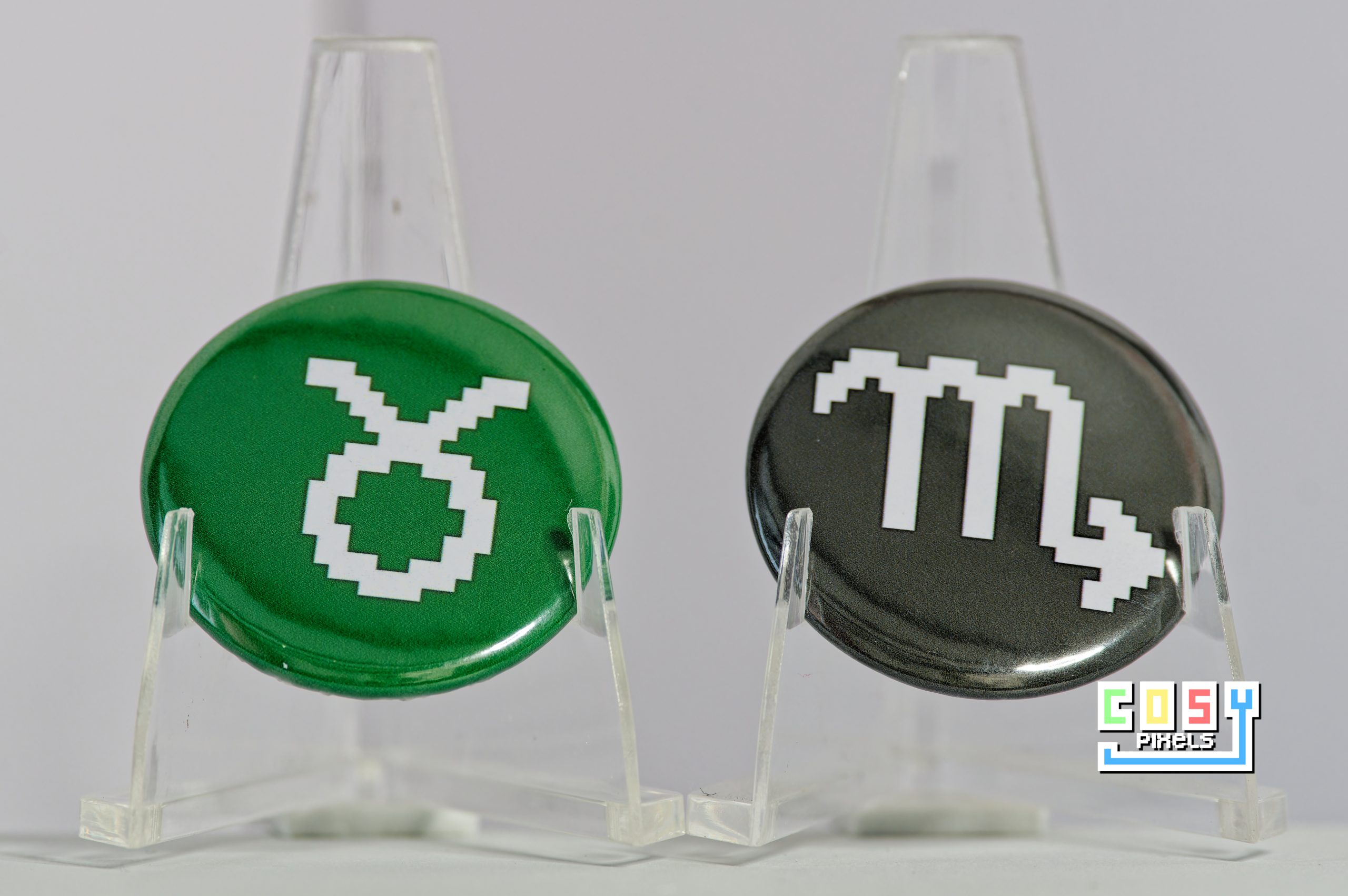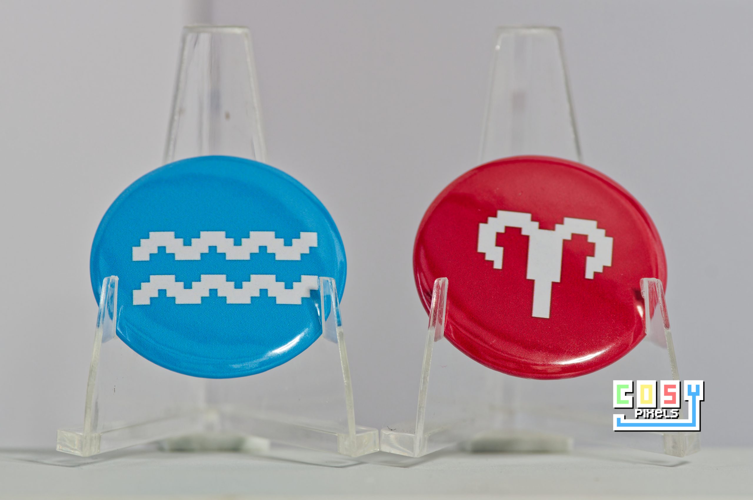 • 2 pixel-art versions of your chosen Zodiac signs, as a badge, digitally hand-drawn with love